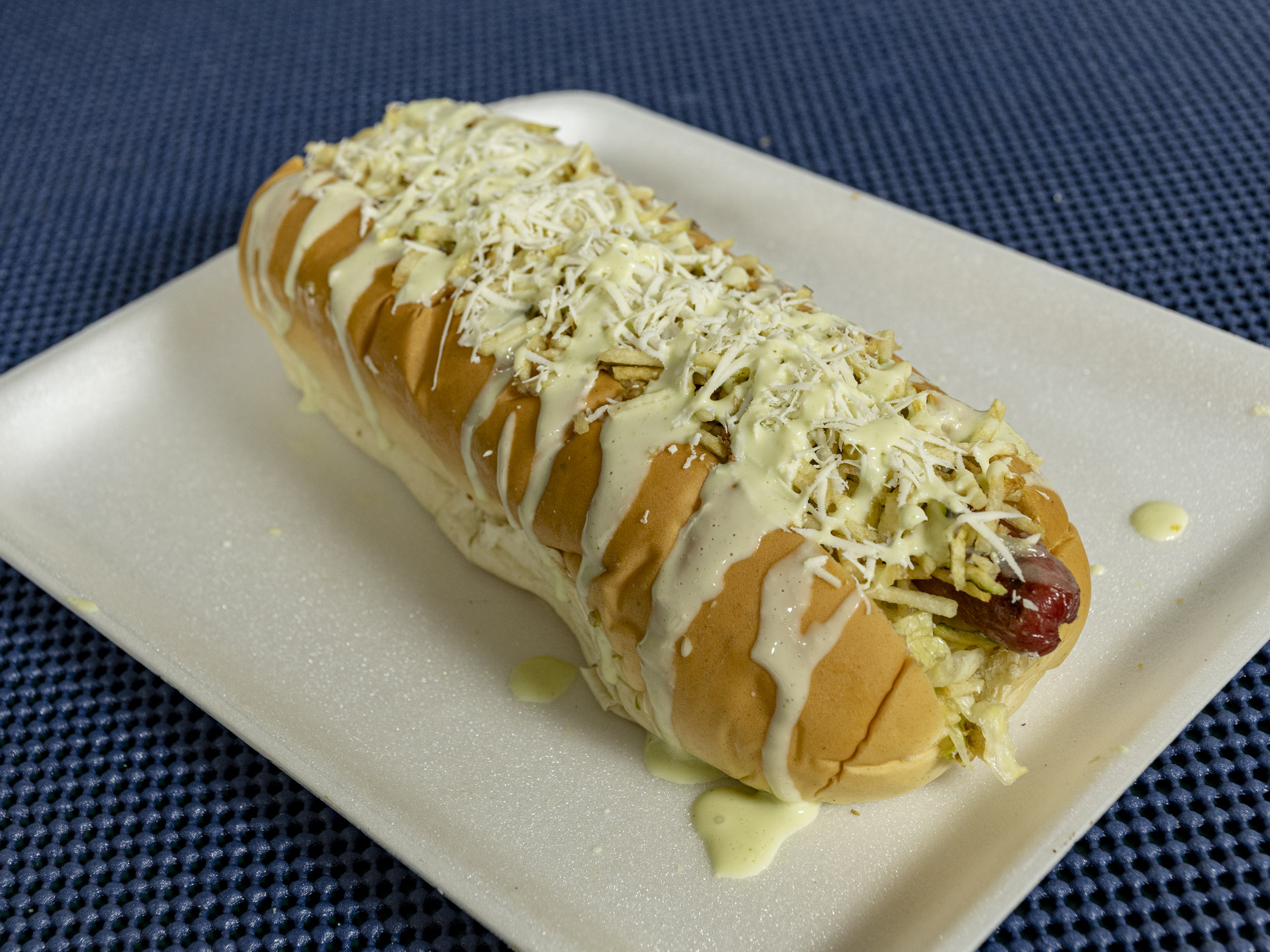 Trae: Doble Salchicha, Pan, Mozzarella, Lechuga, Salsas, Chongo.
