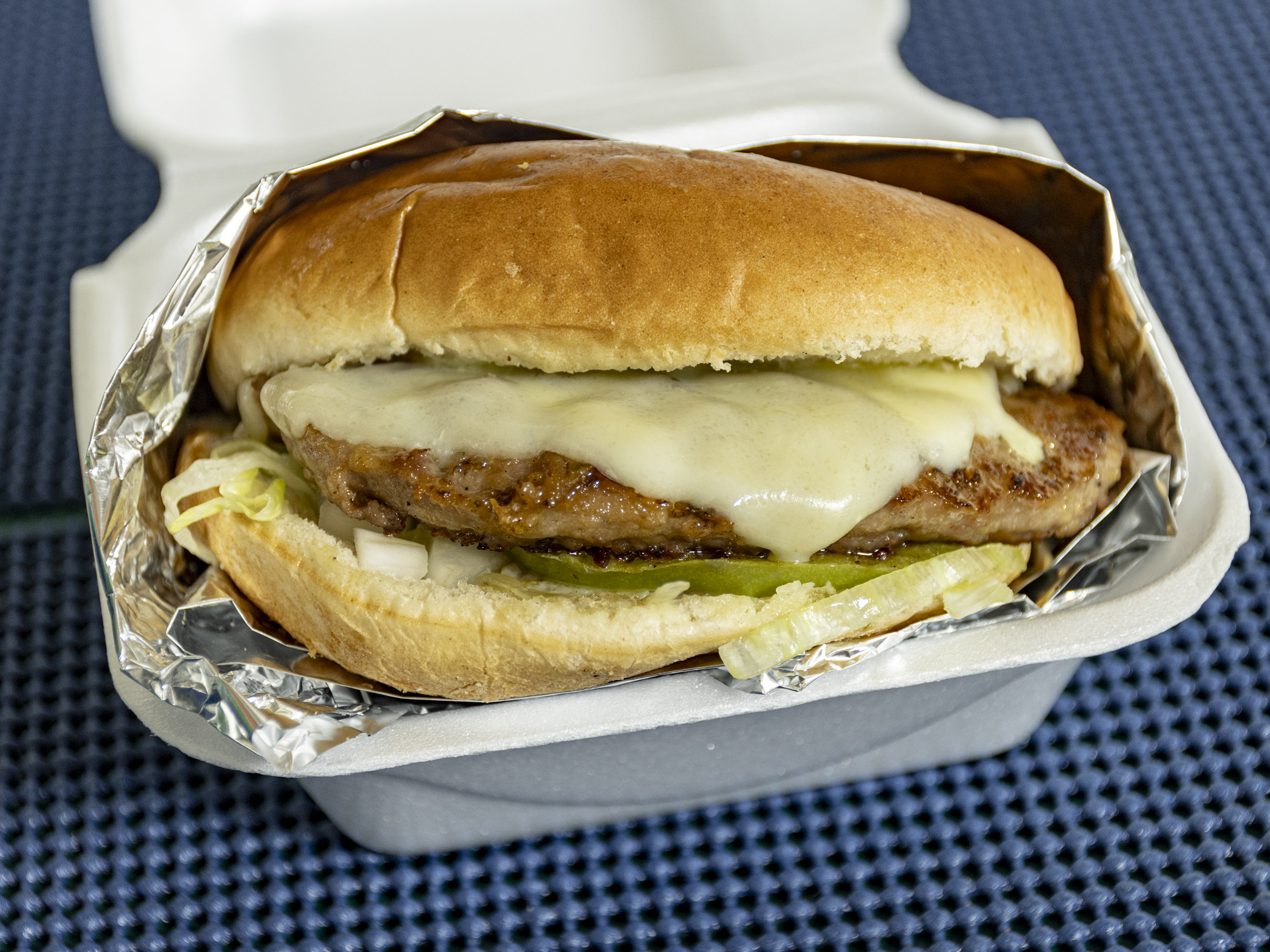 Trae: Pan, Carne Artesanal, Lechuga, Mozarrella, Cebolla, Tomate.