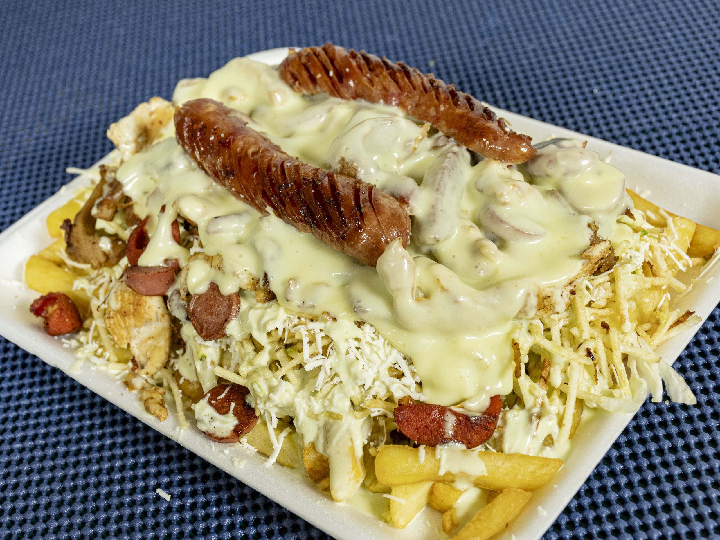 Salchipapa Suiza