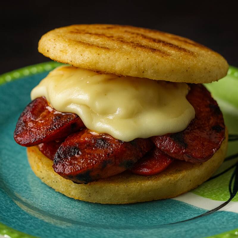 Arepa Rellena con Chorizo Santarosano.