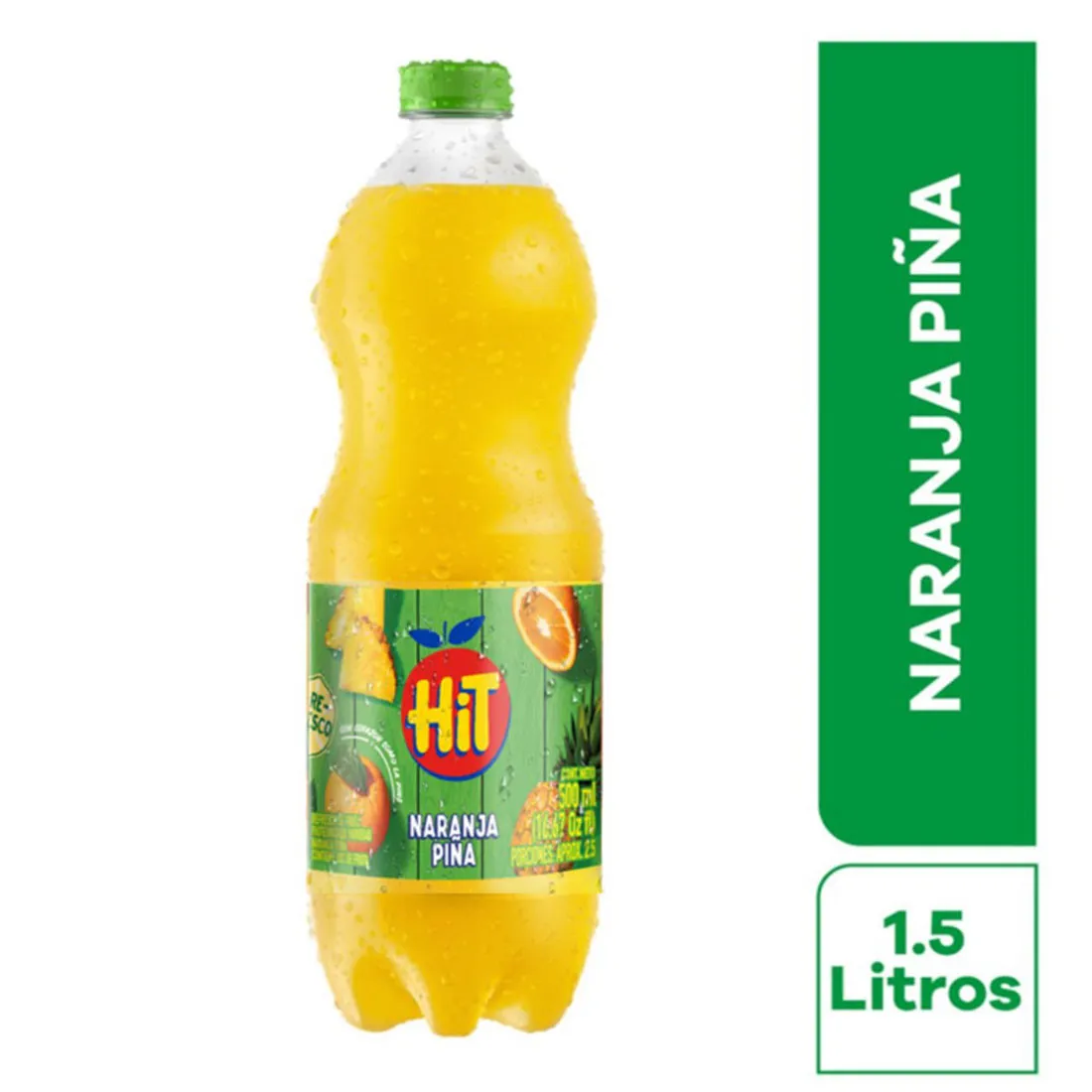 Refresco HIT 1.5 Naranja Piña envase de plástico.