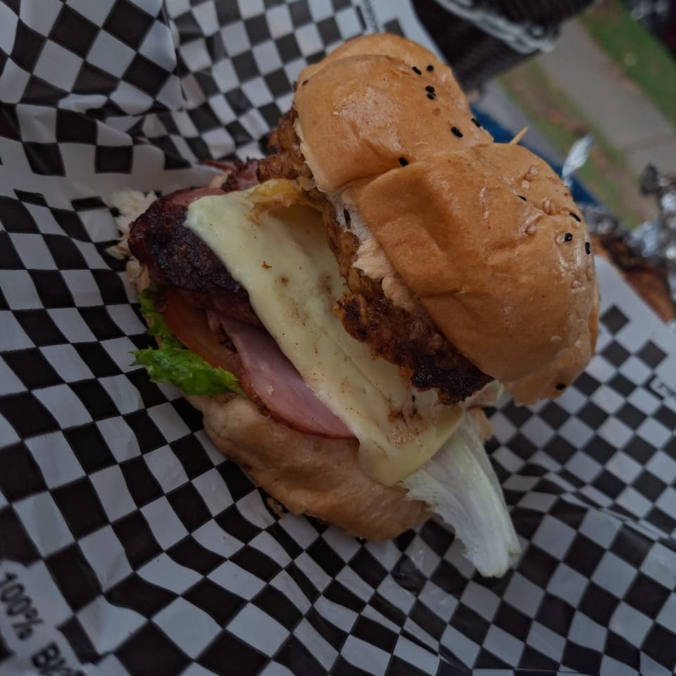 CARNE CERDO BONDIOLA,PAN BRIOCHE,QUESO,TOCINETA,PIÑA,LECHUGA,TOMATE,SALSA DE LA CASA