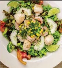 Mezcla de lechugas, champiñones y camarones entro otros con un delicioso aderezo.