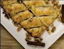 Elaborado con pasta, relleno de nueces y almendras bañado en almibar