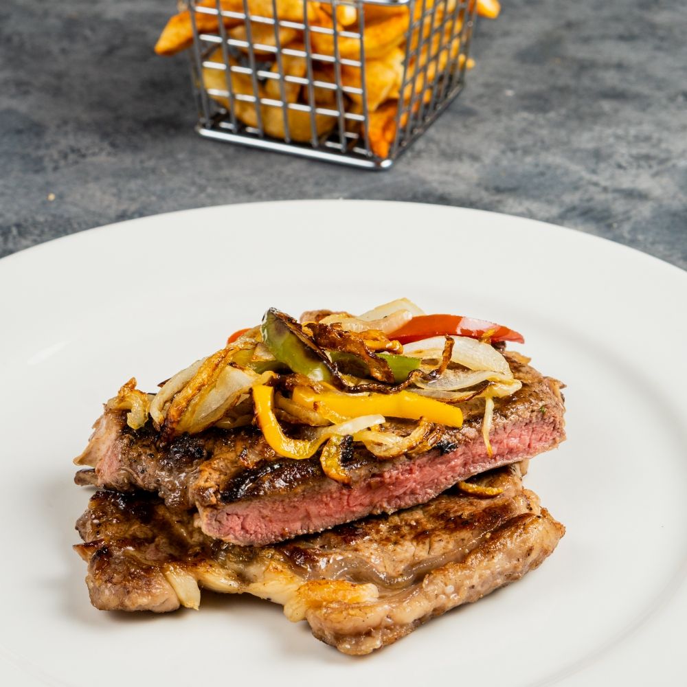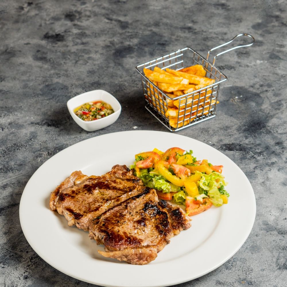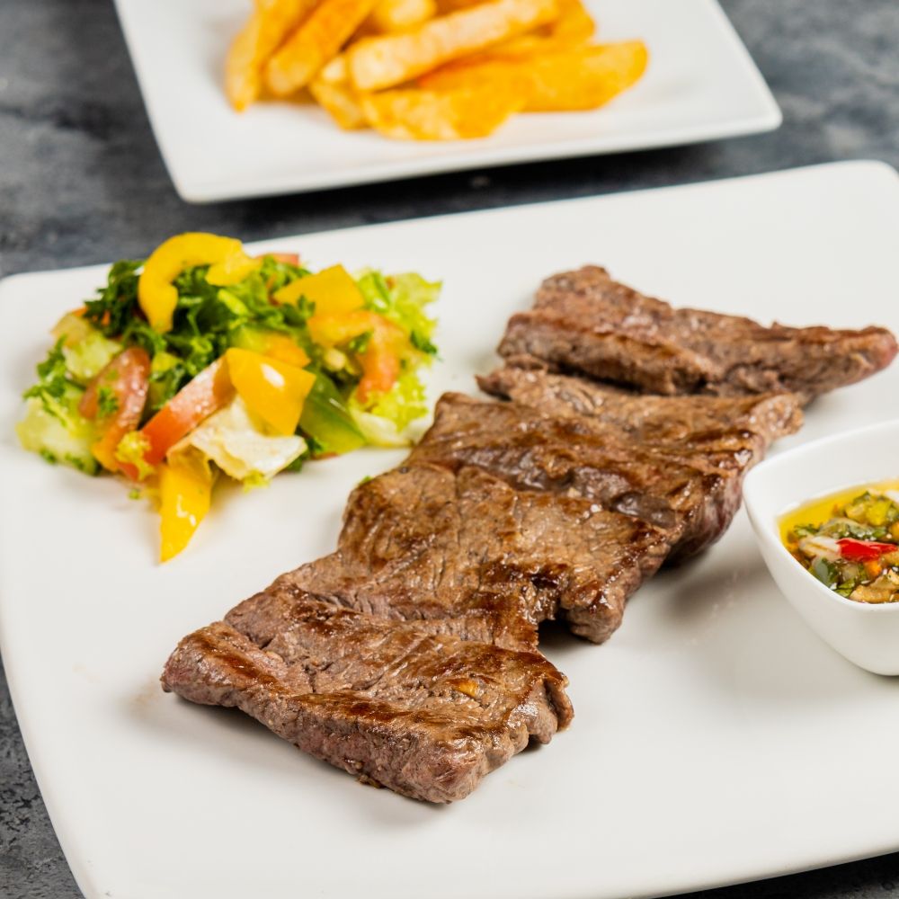 Tierno corte de lomo de res junto a 2 de nuestros acompañamientos.