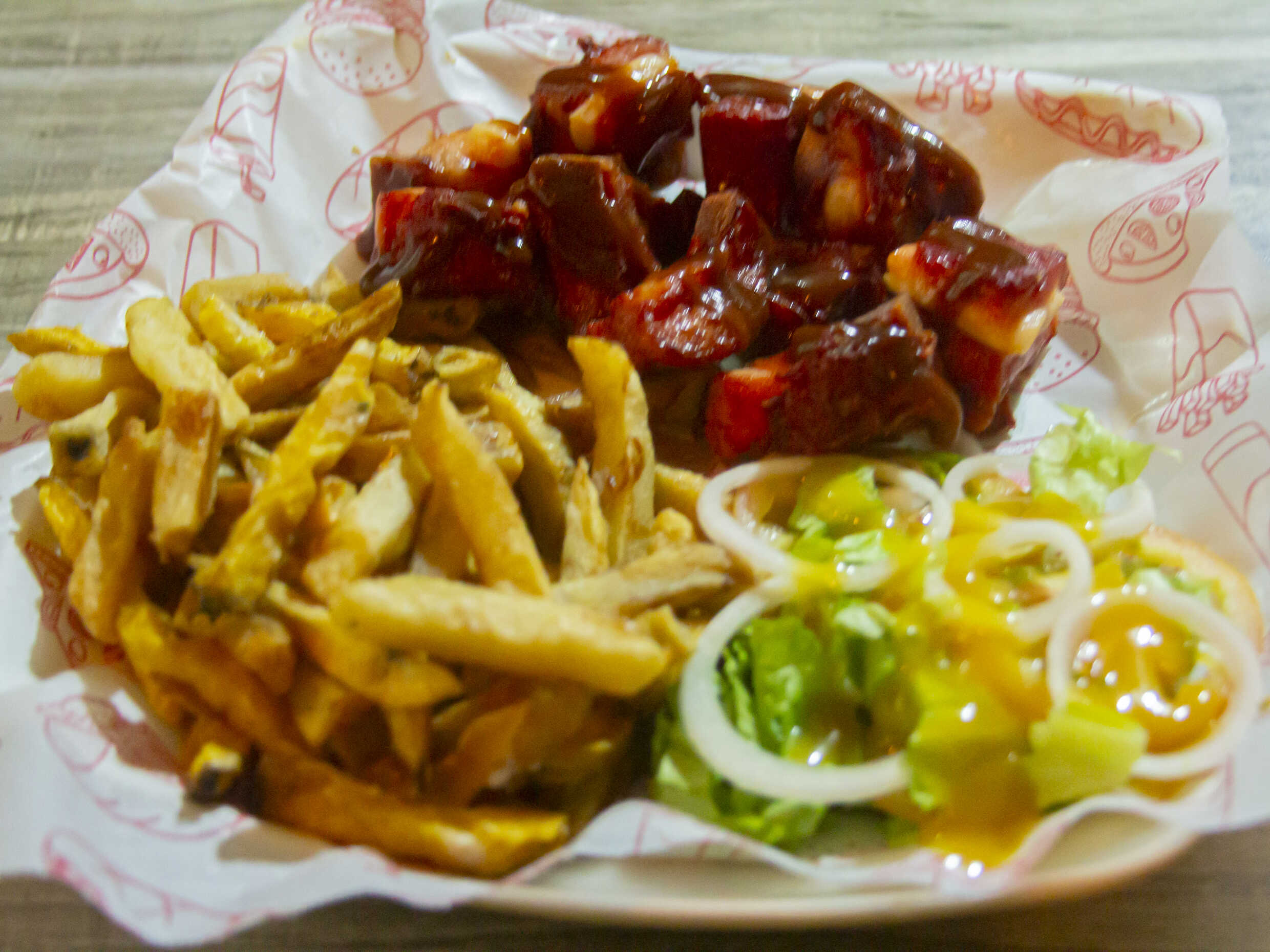Costillitas En Salsas Bbq, Papa francesa, ensalada