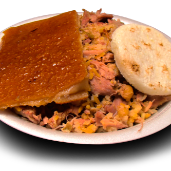 Lechona 250 gr con arepas, papas, gaseosa 250 ml.