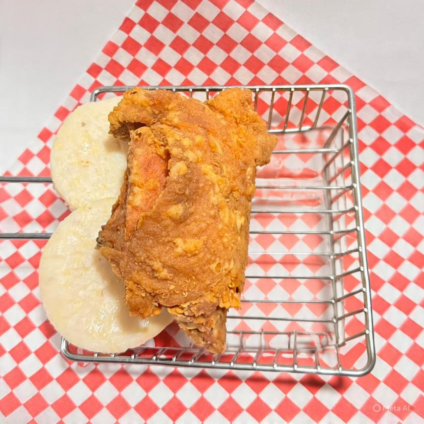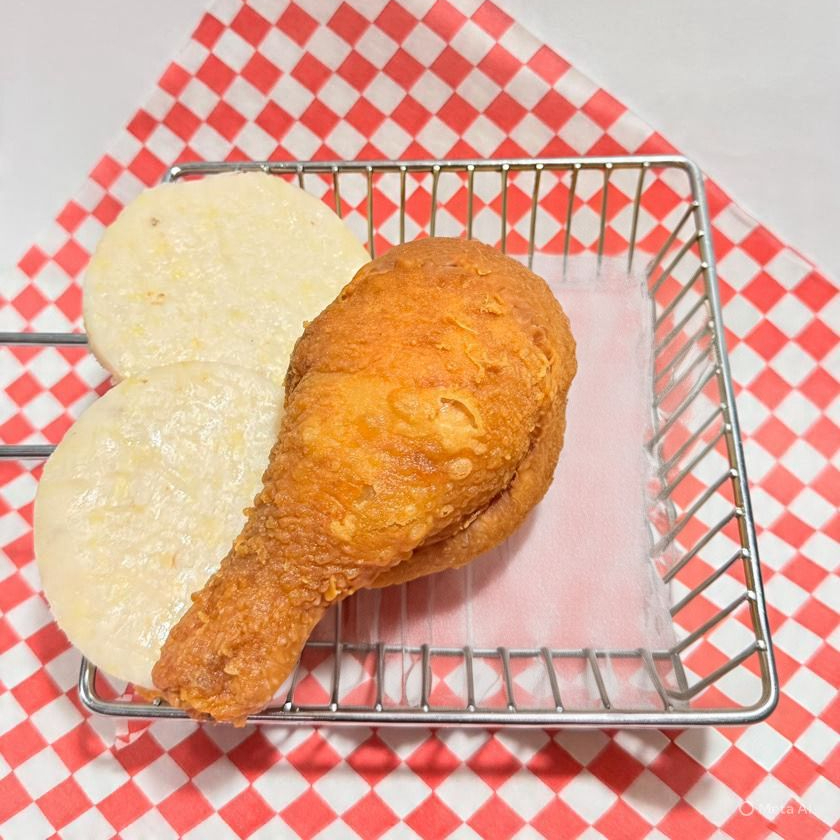 Pierna de pollo con arepa.