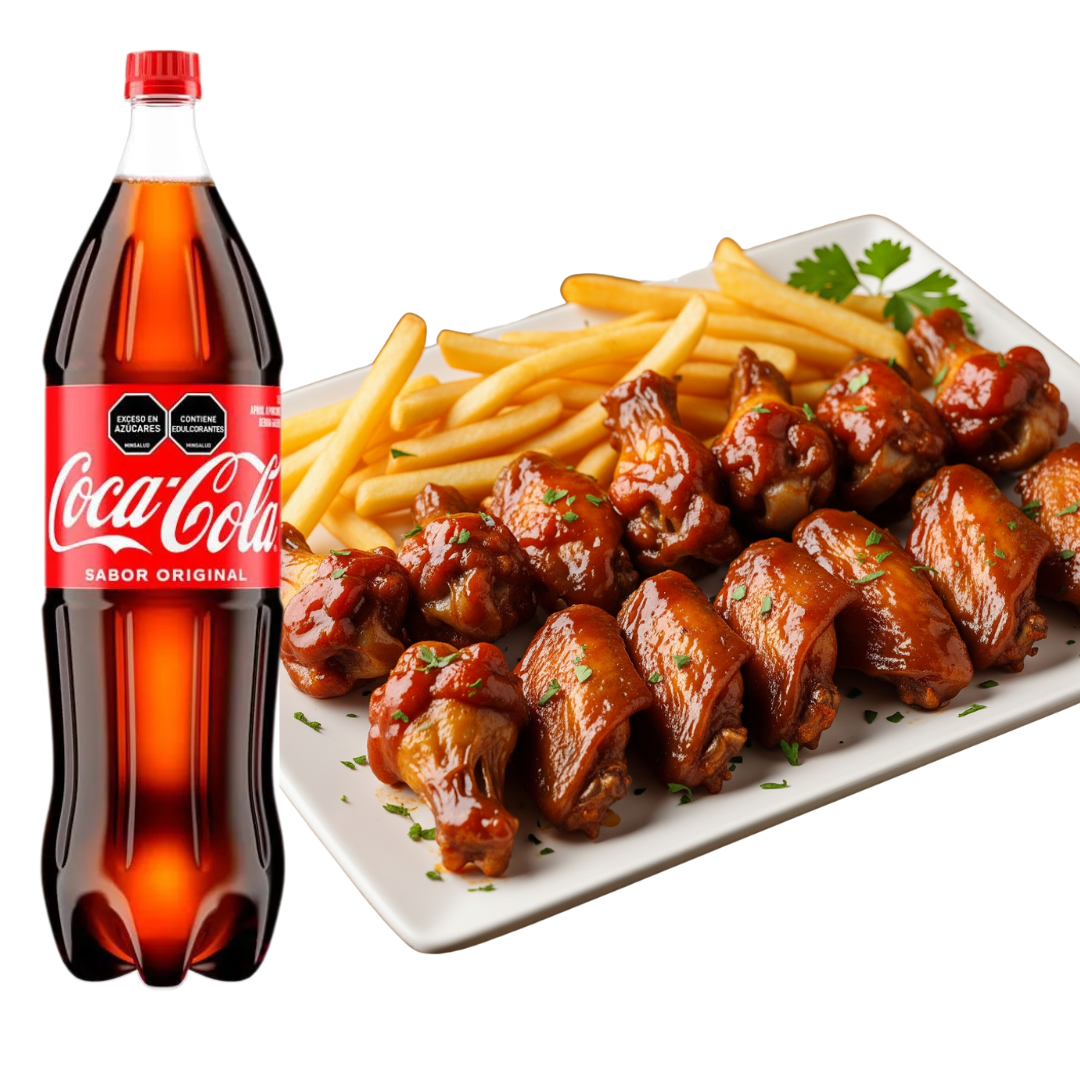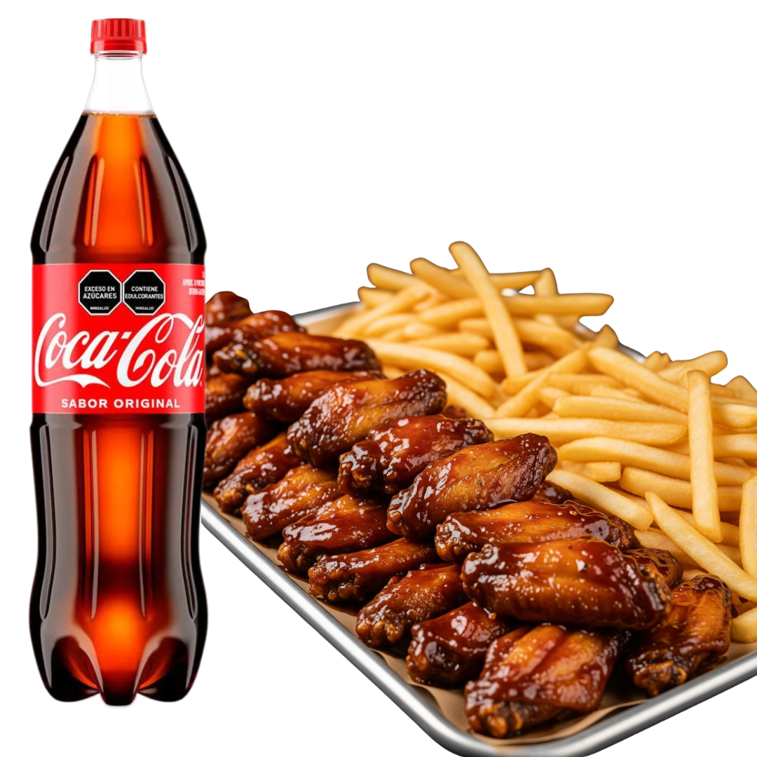 (16) PIEZAS DE ALAS - (250 GRS) PAPA FRANCESA - SALSAS - GASEOSA 1 LITRO