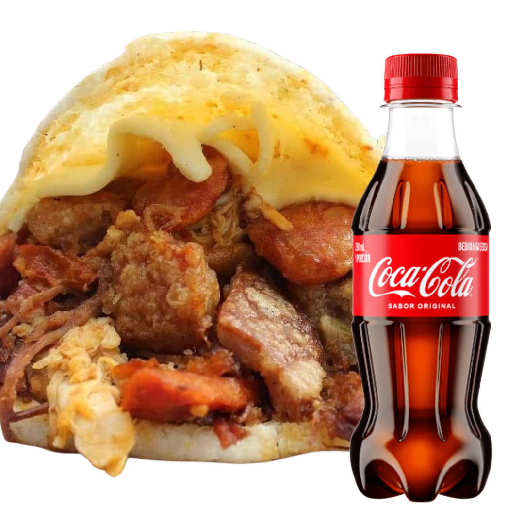 AREPA RELLENA - CARNE DE RES - POLLO DESMECHADO - QUESO TAJADO - JAMON - MAIZ TIERNO - TOCINO + GASEOSA 250 ML