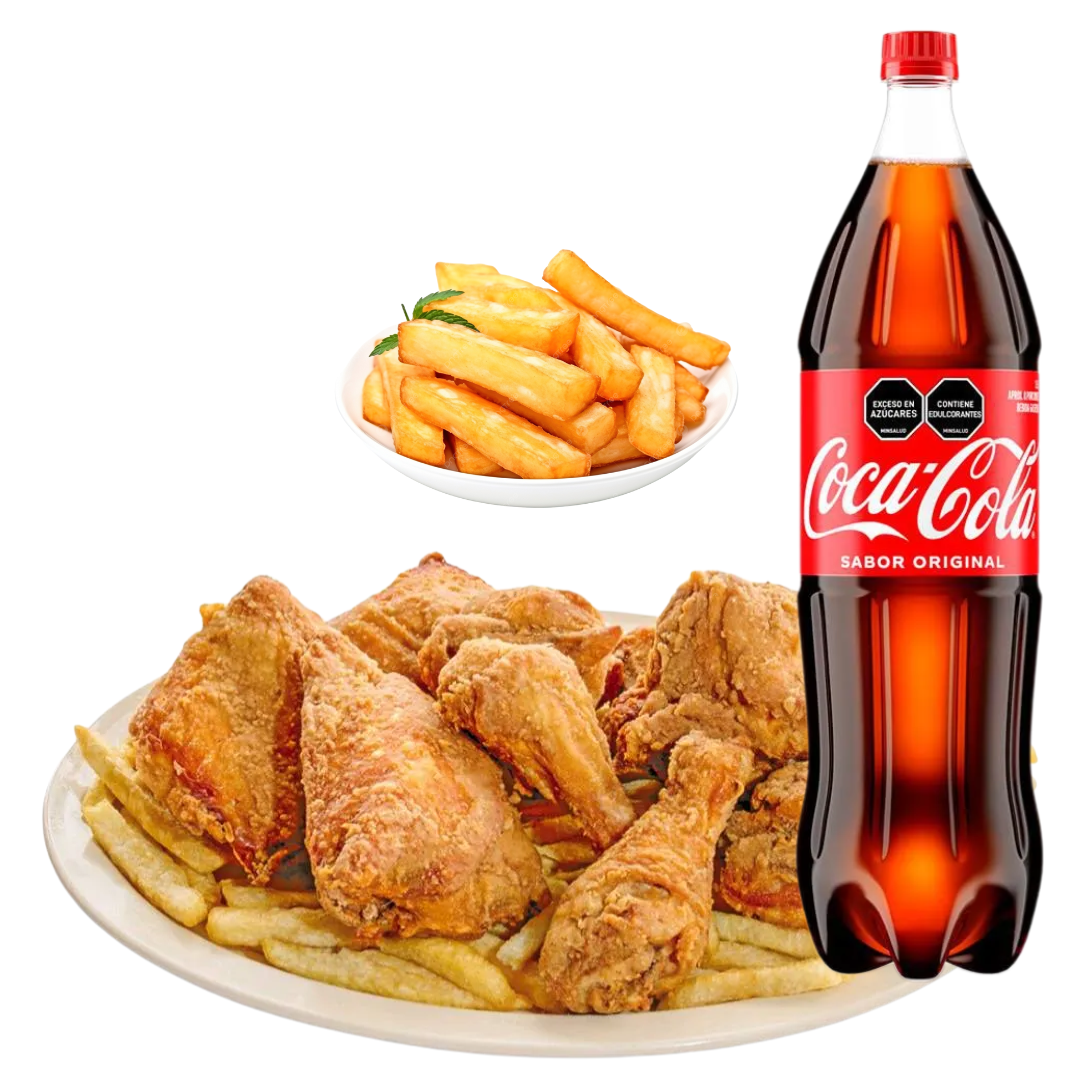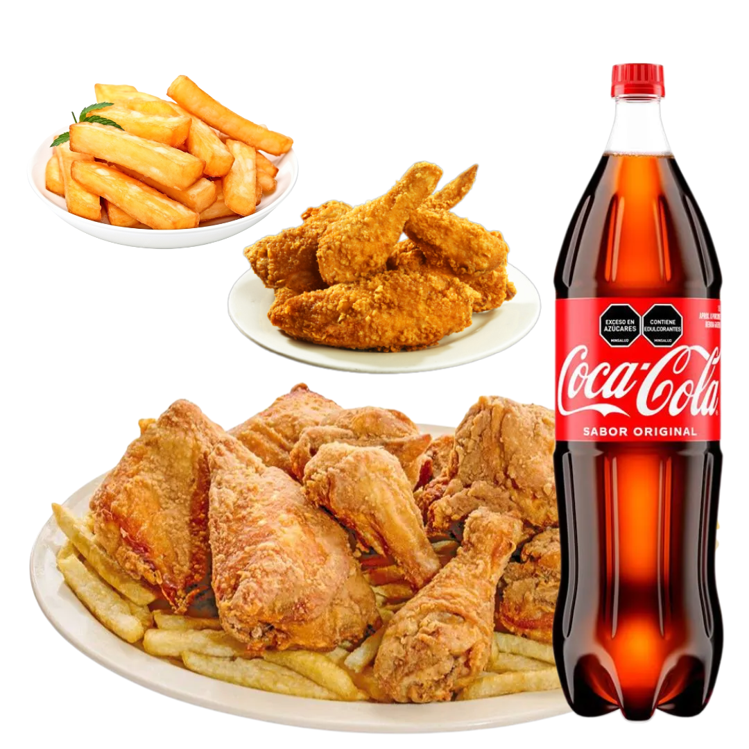 1 POLLO BROASTER*1 + Porción de Papas francesas*1 + Porción de Croquetas de Yucas*1 + Porción Arepas*1 + Gaseosa Coca-Cola Sabor Original 1.5 L*1