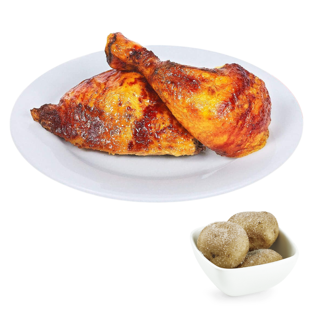 1/2 POLLO ASADO - PAPA SALADA - AREPA
