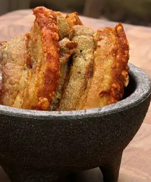 Chicharrón 300 g, carnudo, arroz, papa francesa, ensalada (tomate y lechuga), limón.