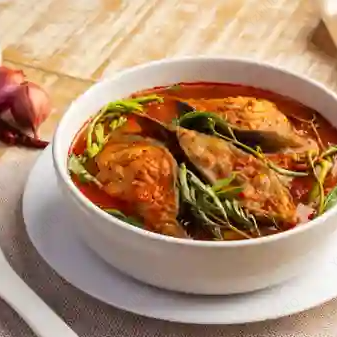 Picuda en salsa, yuca en salsa, arroz, ensalada.