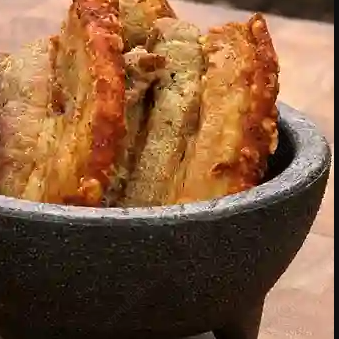 Chicharrón 150 g carnudo, arroz, papa francesa, ensalada, limón.