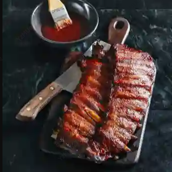 Costillas de cerdo 200 g ahumadas BBQ, papa francesa, ensalada de la casa.