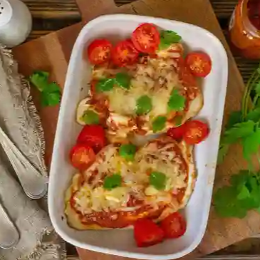 Pechuga gratinada 200 g, arroz, papa francesa, ensalada.