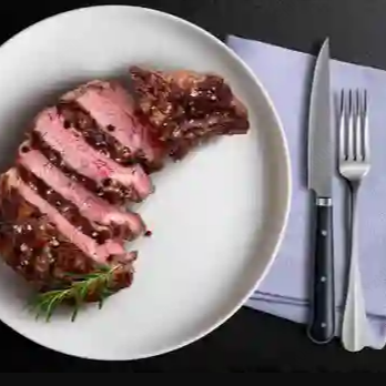 Punta de anca 200 g, arroz, papa francesa, ensalada.