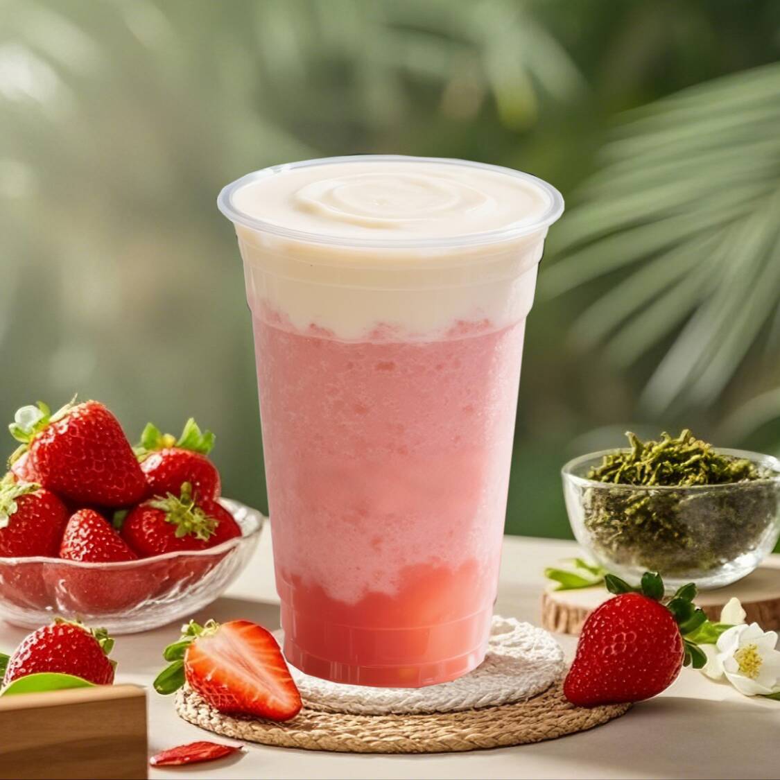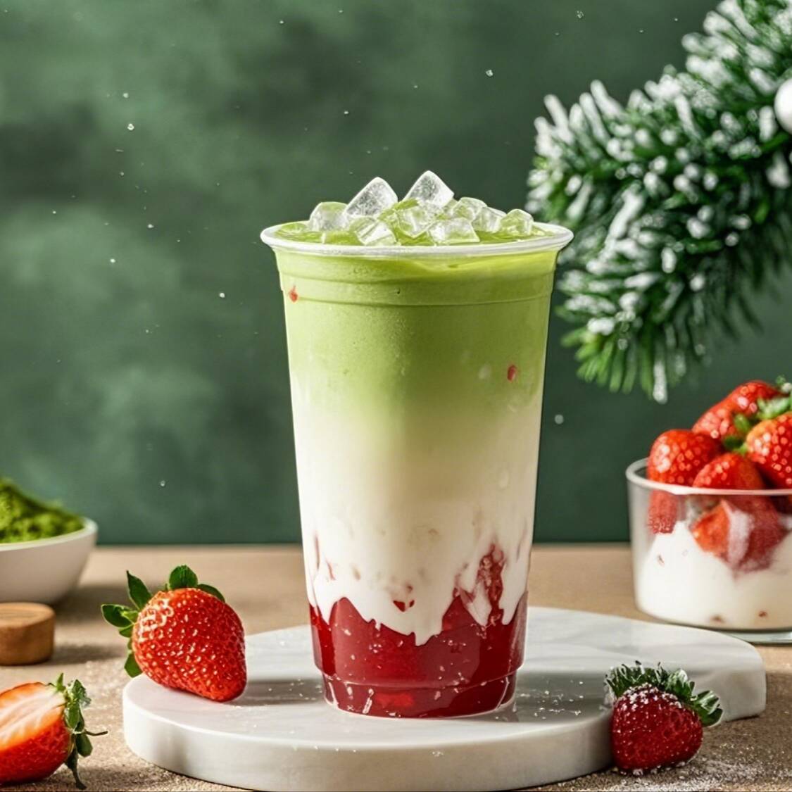 Fresa+Matcha+Crema no Láctea+Perla castaña de agua