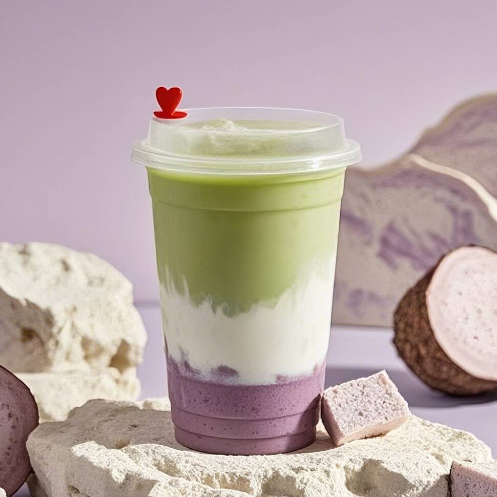 Matcha+Puré de Taro+Perla Castaña de Agua+Crema no Láctea