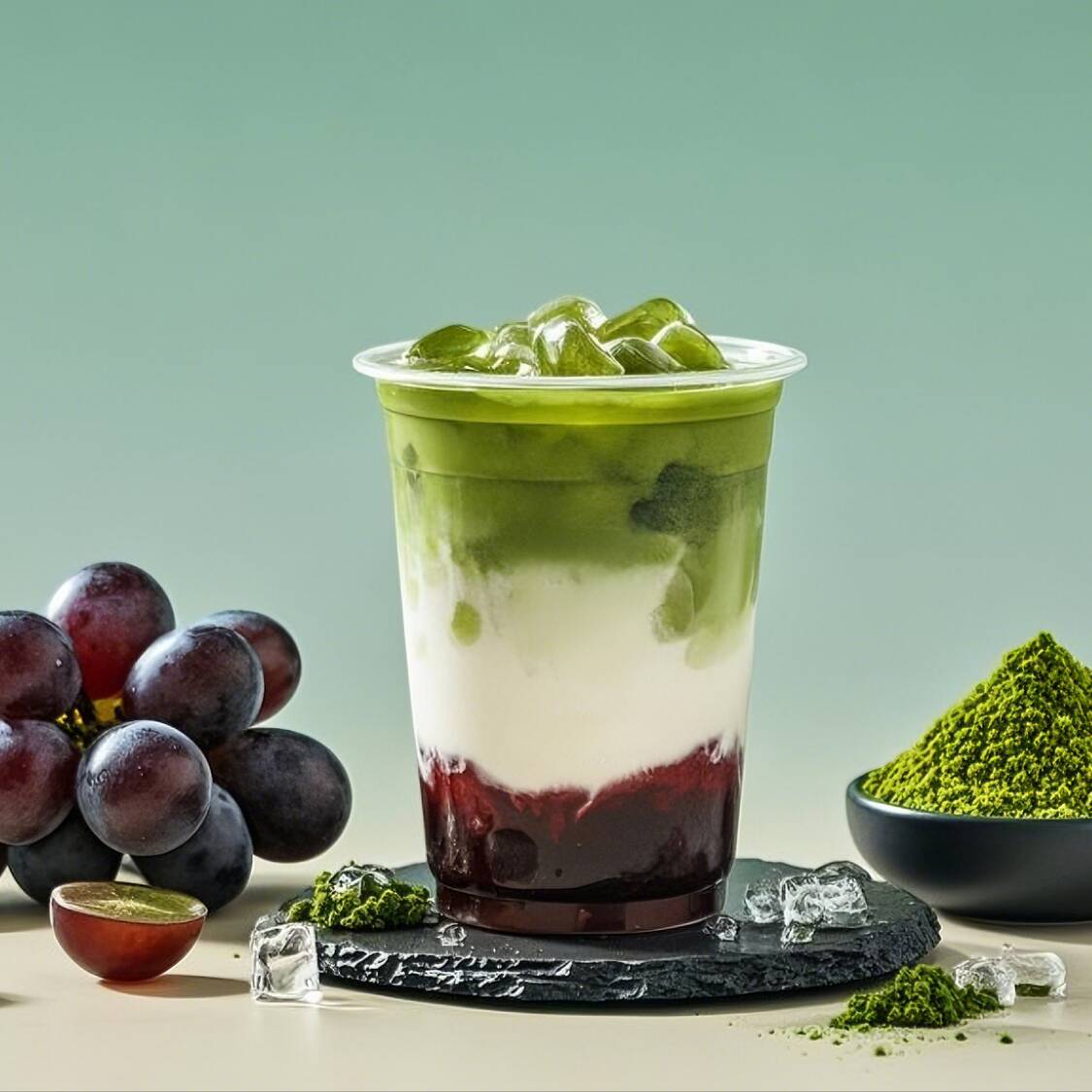 Matcha+Uva+Perla Castaña de Agua+Crema no Láctea