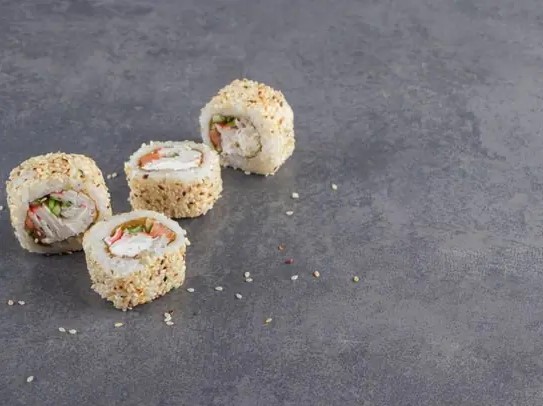 Salmón, queso crema y aguacate, rollo tempurizado.