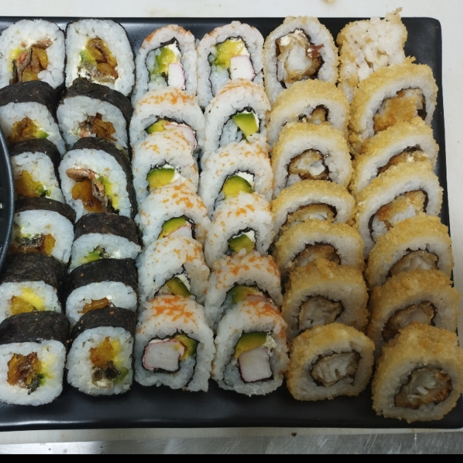 40 makis, 4 sabores sushi+postre de banana u oreos crunk