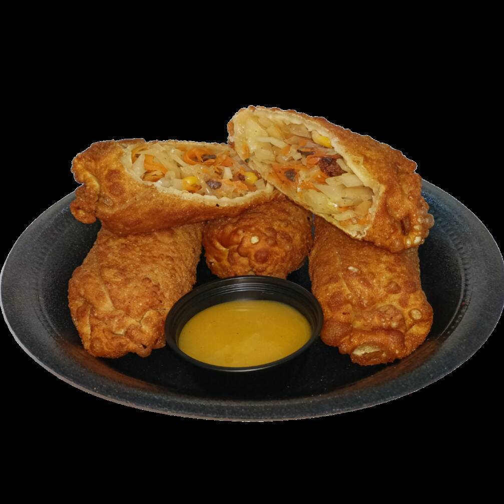4 rollos primavera, rellenos de seitan, brocoli, champiñones, maiz tierno, repollo y otros vegetales
