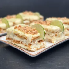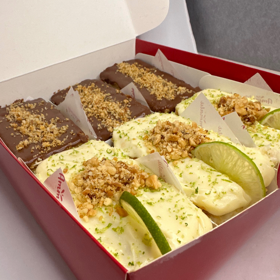 Milhojas preparadas al instante, con crujientes capas de hojaldre, sabores auténticos de Ammalú y arequipe artesanal. Crujientes capas de hojaldre con suave relleno de limón, bañadas en chocolate blanco y trocitos de macadamia. ¡Disfrútala al instante!