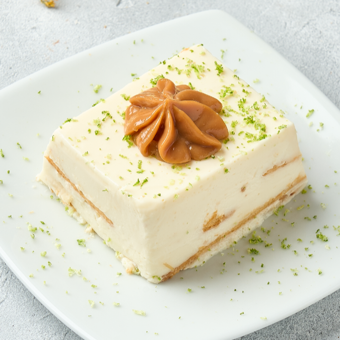 Postre de limón con galletas ducales, fresca ralladura de limón y un toque de arequipe.