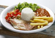 Mojarra frita o a la parrilla (no especifica preparación). Acompañada de patacón, yuca y guacamole.
