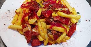Chorizo santarrosano, papa francesa 200 g, 4 huevos de codorniz y queso.