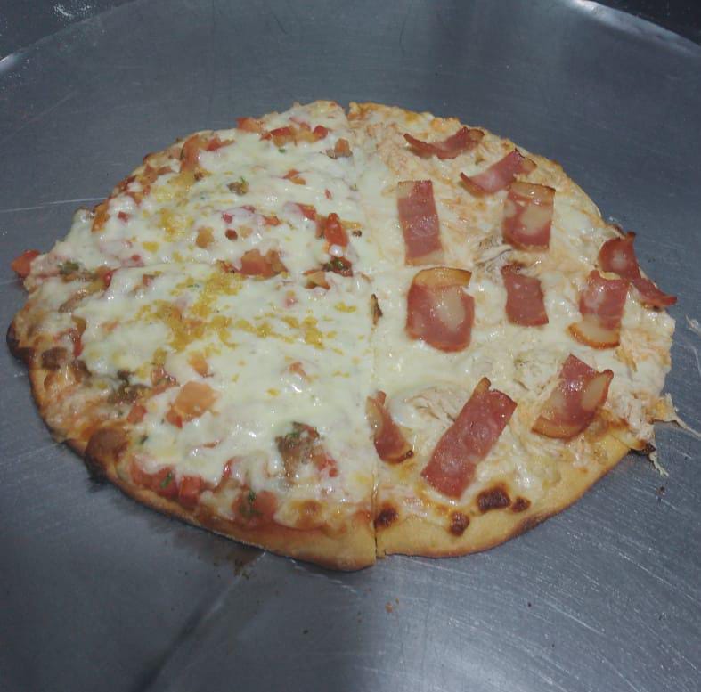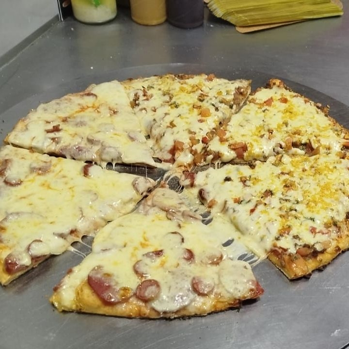 Pollo, salami, pepperoni, cabano, jamón, carne molida, champiñón.