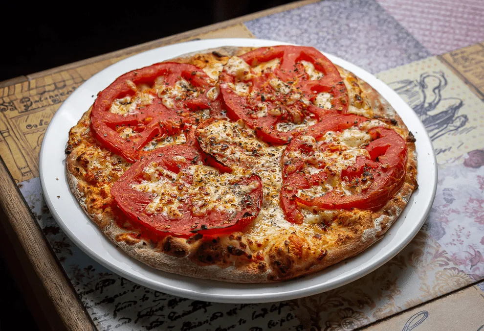 Pizza con tomate y orégano.