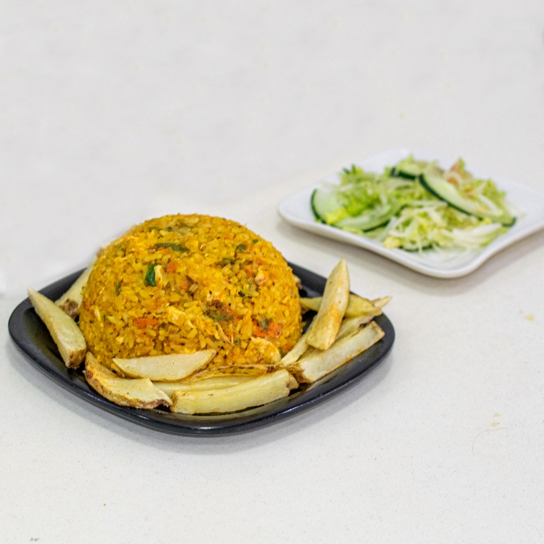 Arroz con Pollo + Papa a la Francesa + Ensalada