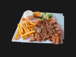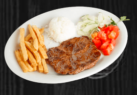 200 gms Churrasco con papa a la francesa, arroz y ensalada.