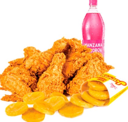 1 Pollo broaster, papa a la francesa, 4 yucas y 4 arepas.
