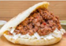 Arepa rellena con queso blanco rayado y carne molida. Tamaño a elección.