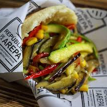 Deliciosa arepa rellena de Zucchini, champiñones, brócoli, zanahoria, cebolla morada, pimentón, maíz, salteados al estilo shanghai, queso gratinado.