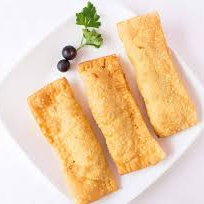 1 flauta elaborada con masa delgada, rellena de cerdo desmechado y hogao.