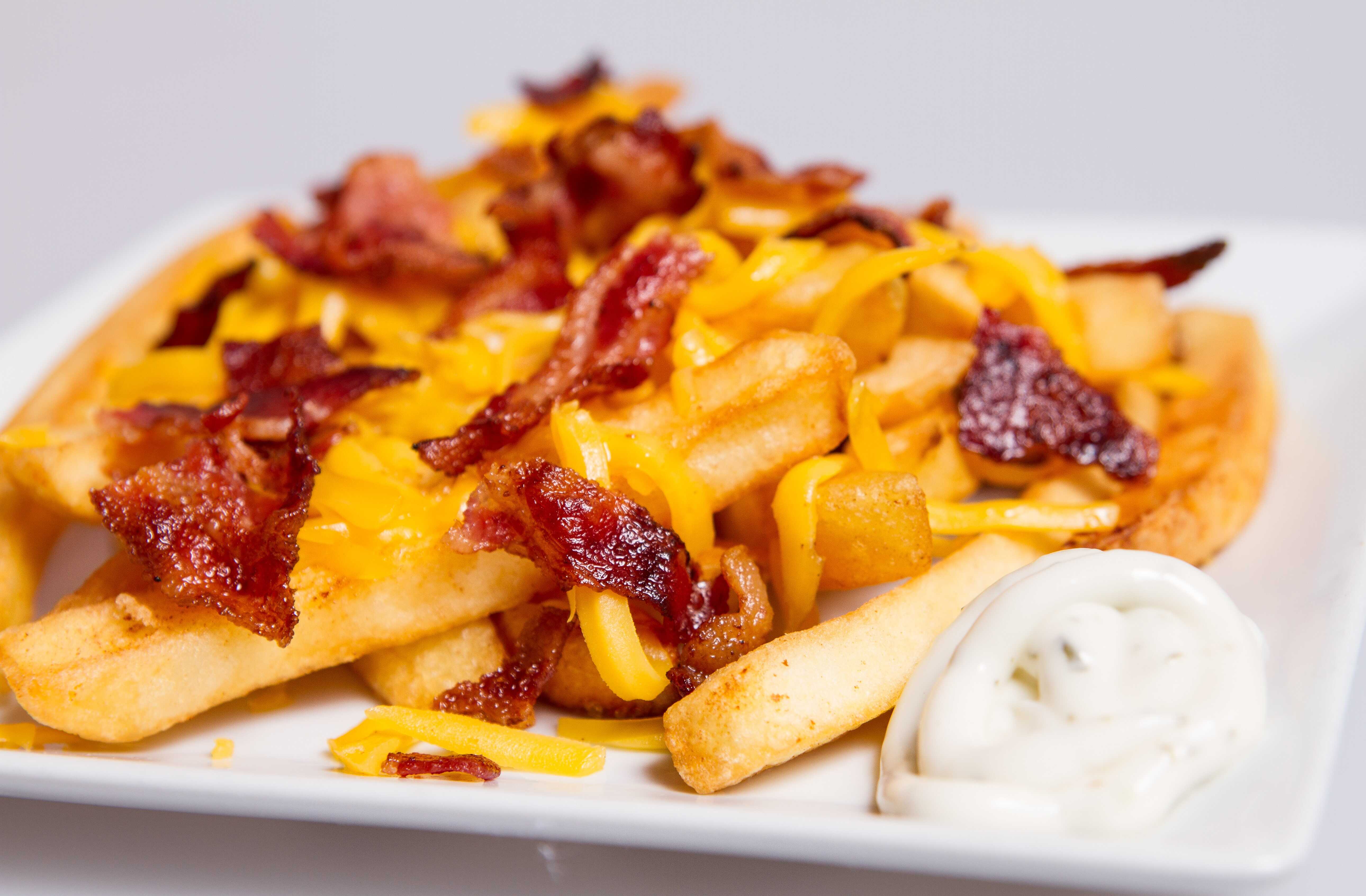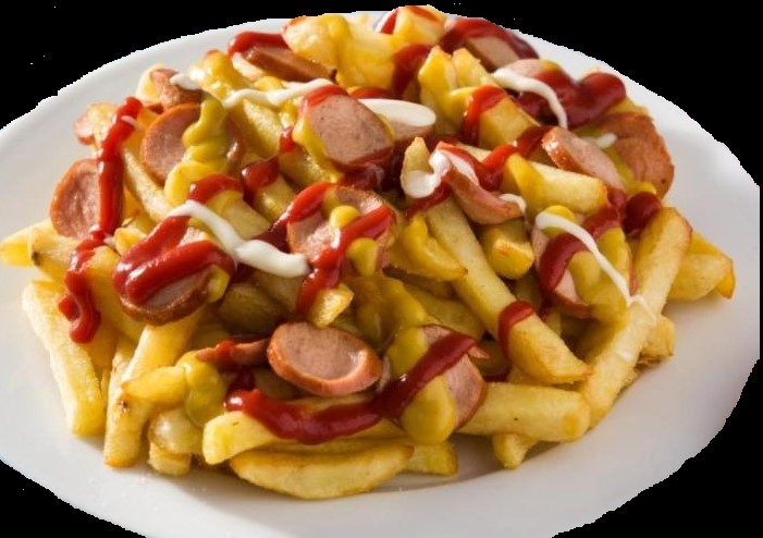 Papas ala Francesa tostaditas, jamón canadiense, paprika y topping de queso holandés