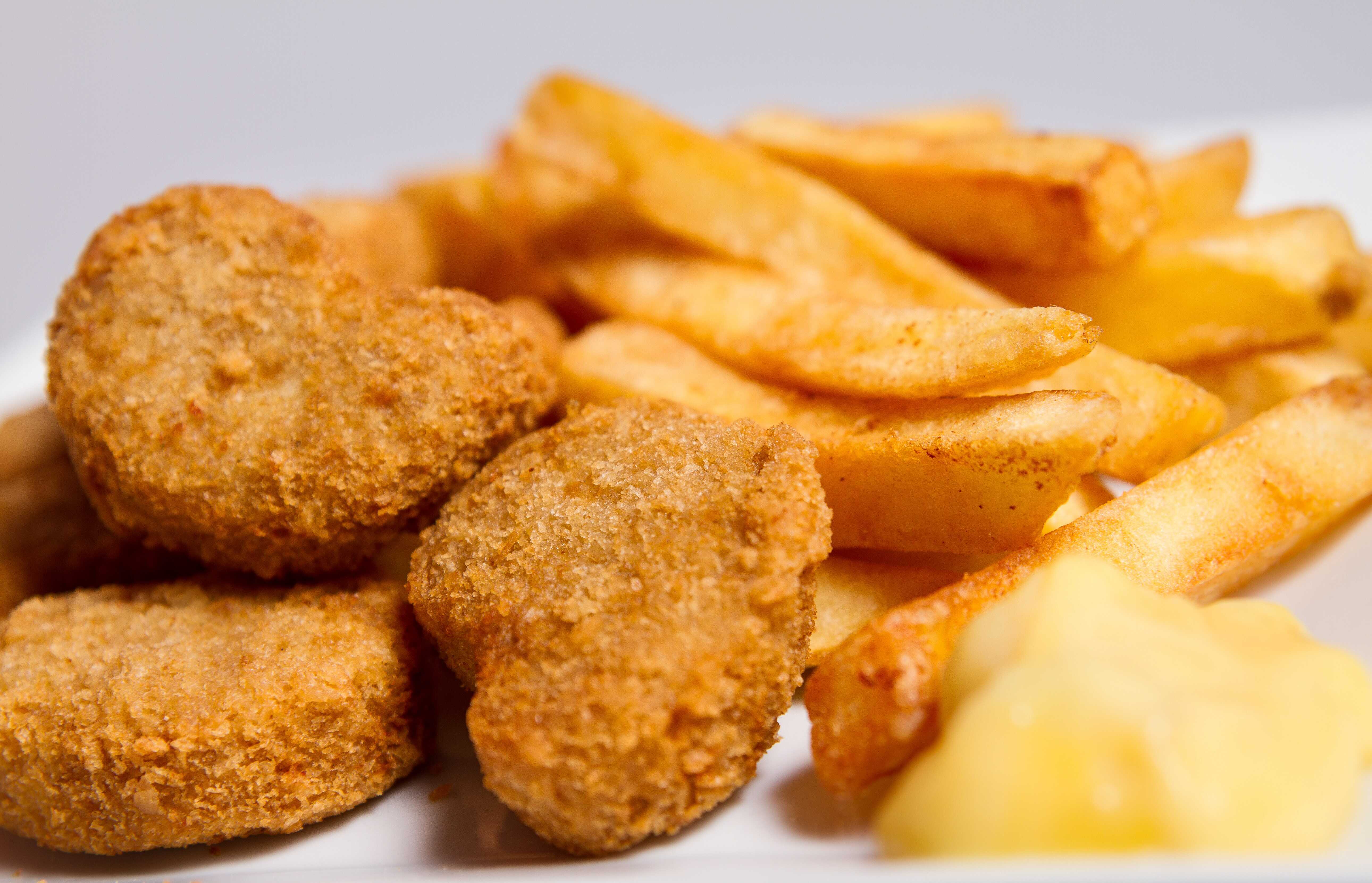 Nuggets de Pollo apanados acompañados con papas a la francesa