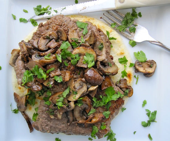 Arepa rellena con maíz tierno, champiñones, espinaca, queso doble crema y huevo de codorniz.