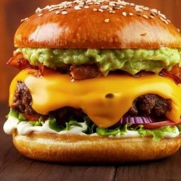 hamburguesa artesanal con carne de 100% res, vegetales, queso mozarela, guacamole, salsas, pan artesanal