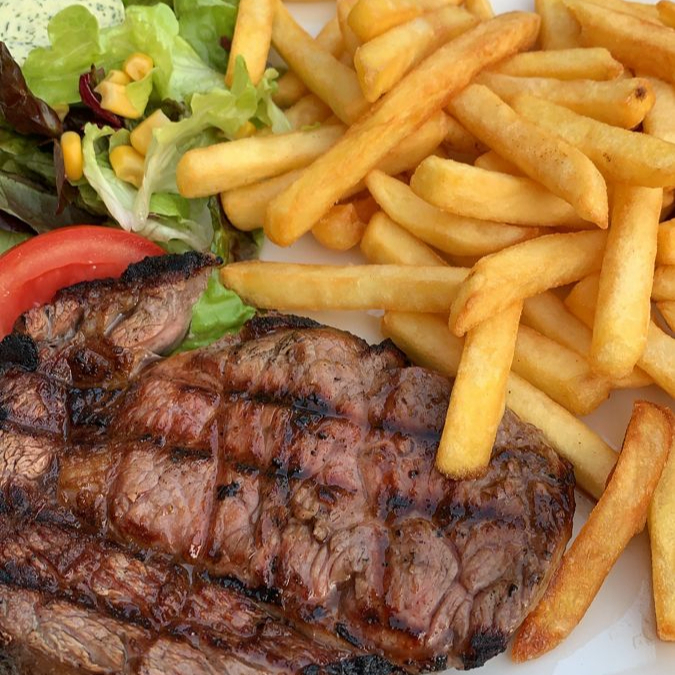 Lomo de cerdo de 250 gr. acompañado de papa francesa y ensalada
