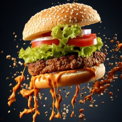 hamburguesa artesanal con 2 carnes de 100% res, vegetales, queso mozarela, papa chip, tocineta, salsas, pan artesanal