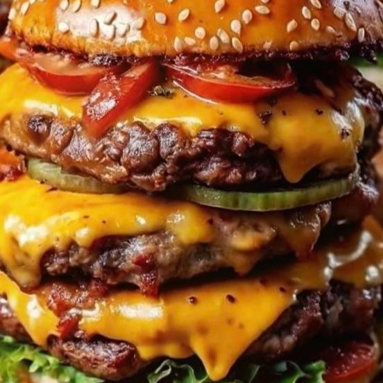 hamburguesa artesanal con 3 carne de 100% res, vegetales, queso mozarela, papa chip, tocineta, salsas, pan artesanal