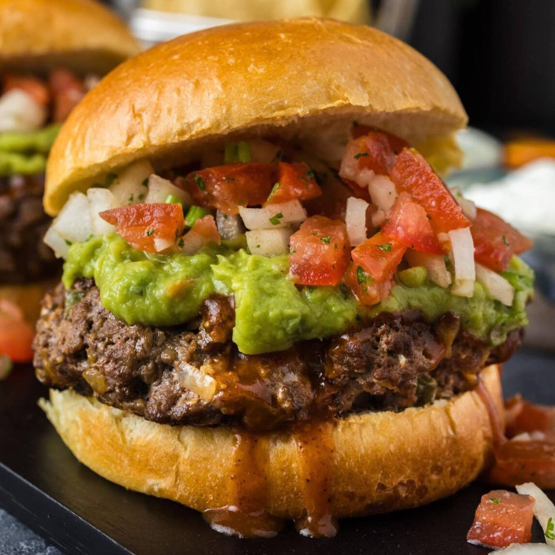 hamburguesa artesanal con carne de 100% res, vegetales, queso mozarela, pico de gallo, guacamole, nachos, pan artesanal