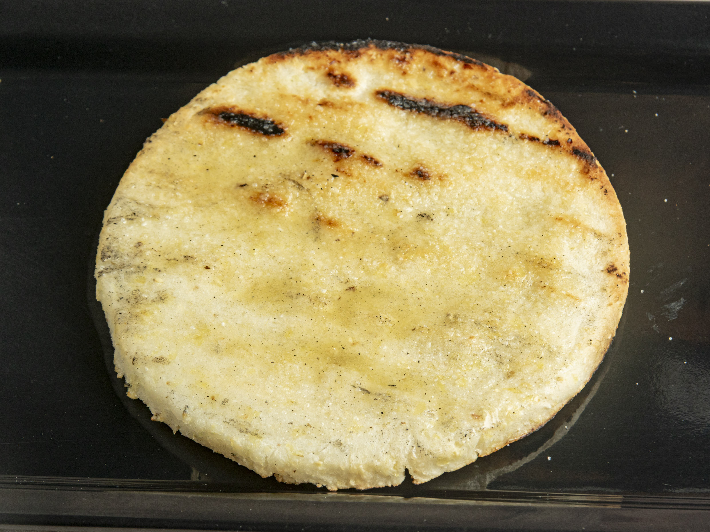 Arepa a base de maíz blanco, con sal y mantequilla.