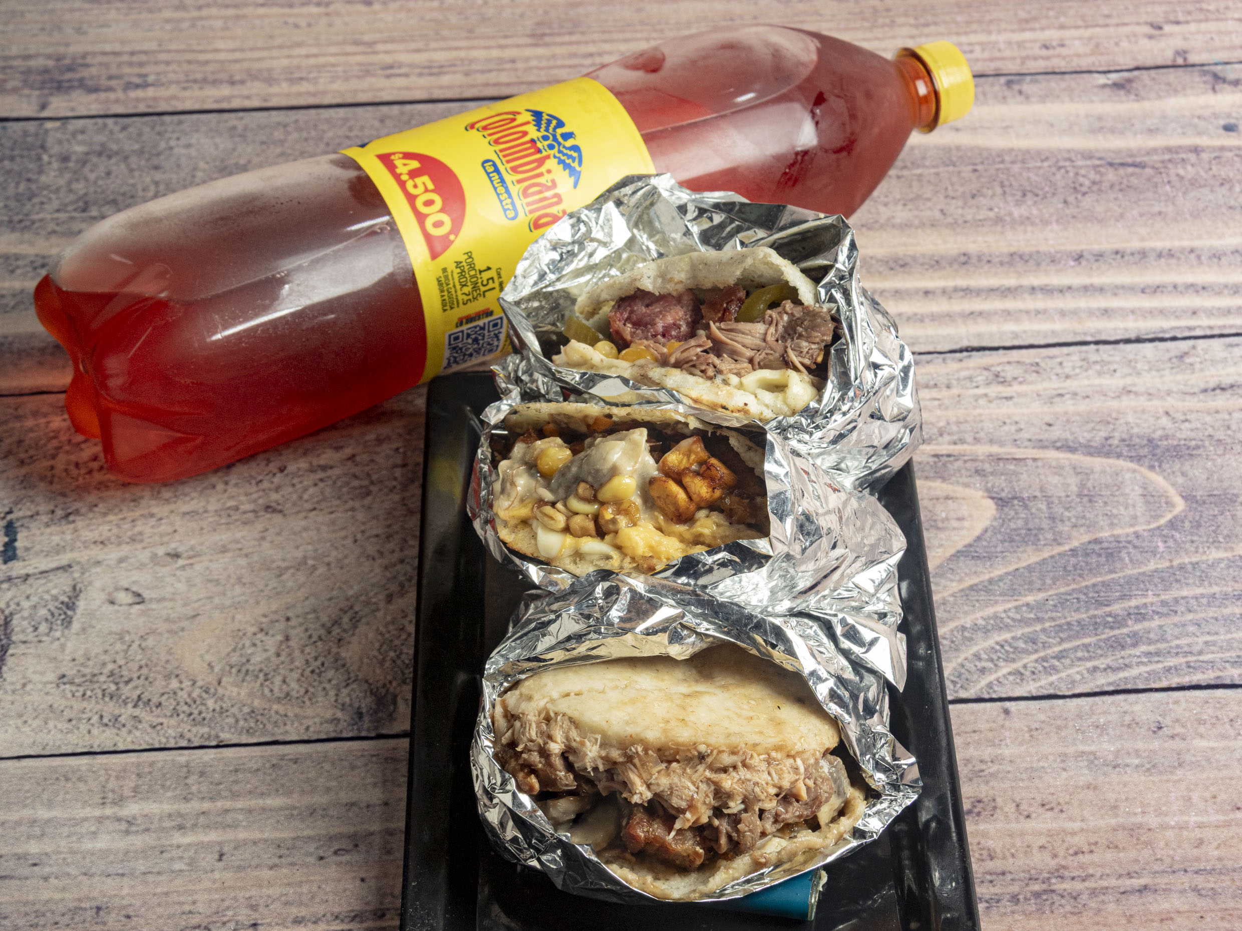 4 Arepas Mixtas + Gaseosa Colombiana Postobón 1.5 L
